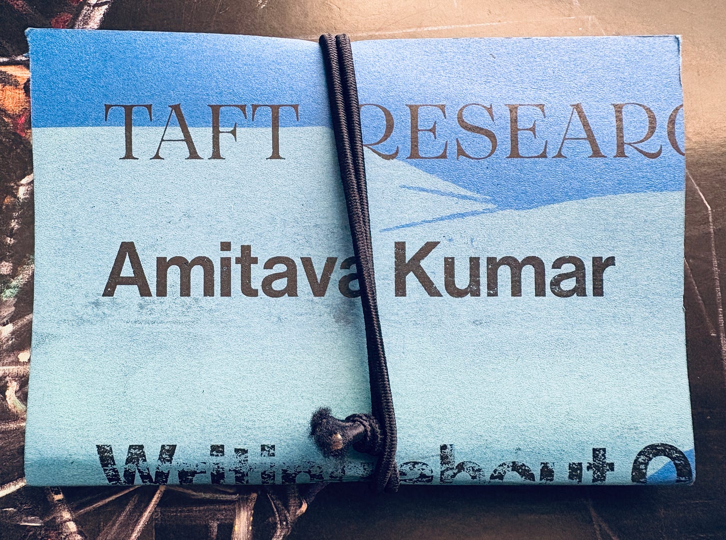 I’m recently back from Cincinnati. At the Taft Center, I conducted a writing workshop in the morning and then, later in the day, delivered a keynote talk about assembling a book. This was a completely different encounter than a simple campus visit because, thanks largely to Stephanie Sadre-Orafai, there had been a series of workshops prior to my visit tied to a few of my books: a writing workshop on walking, another on how to slow-jam the news, and yet another on journaling. Stephanie also made me a cute notebook using a flyer for my talk. Which is all to say, I’m offering gratitude.
