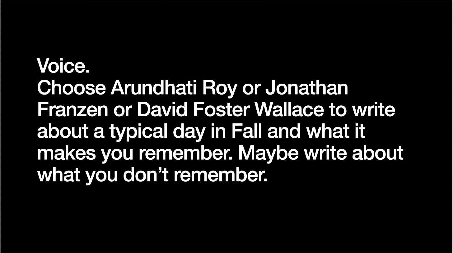 My next exercise in Cincinnati was a detour through Joan Didion, William Maxwell, and Denis Johnson. And then, before we ended, I wanted everyone to do some bad writing. At random, I had chosen a line from Geoff Dyer’s Zona where he quotes Albert Camus. I like doing the bad writing exercise. You take a perfectly good line and make it bad. I think it teaches us what makes a piece of writing good.