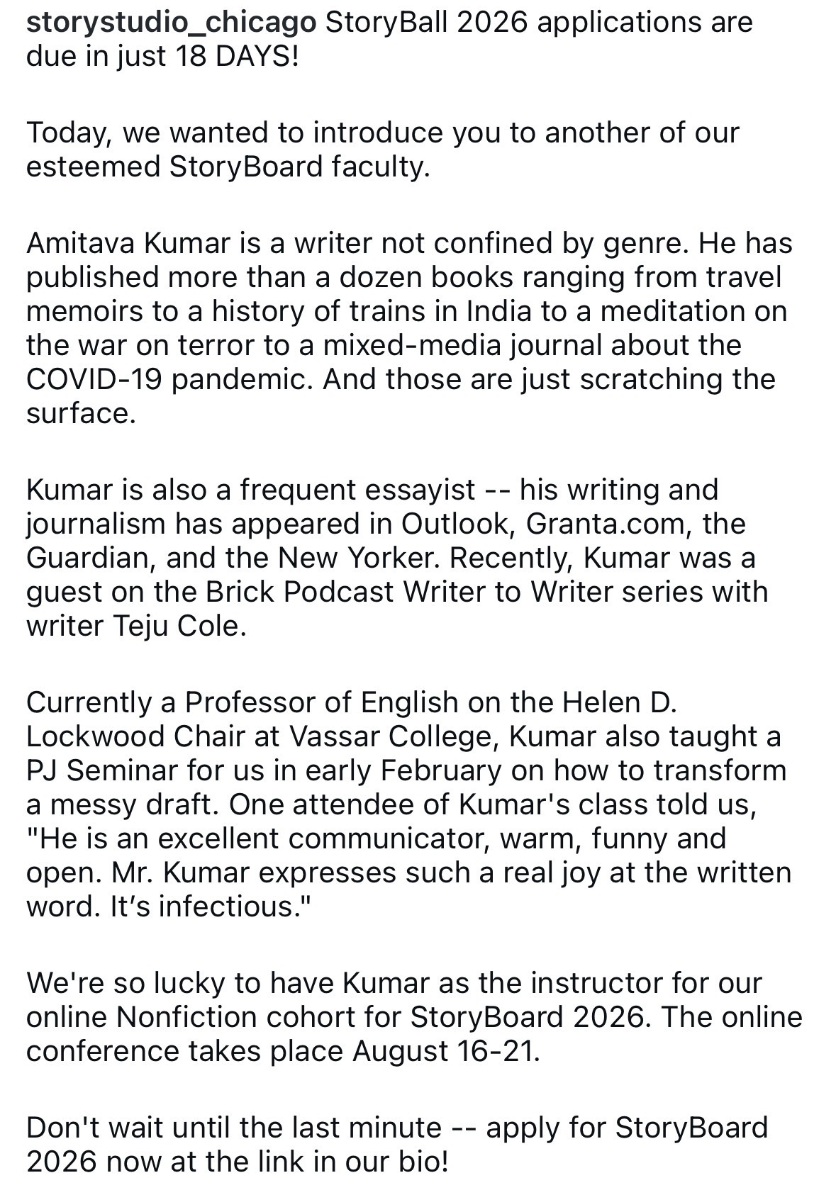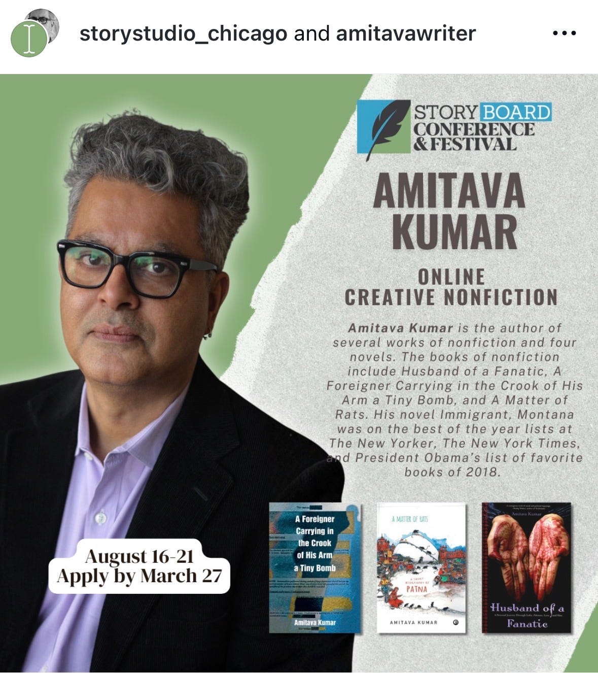 Post-script: For those who have read so far, thank you. Please join #APSTogether if you want to receive my daily notes when we start the month-long reading of The Enigma of Arrival by V.S. Naipaul. Also, my friends at Story Studio Chicago have put out information about an online workshop for nonfiction writing that I will be leading in August. Applications due by March 27. More below, and thanks.