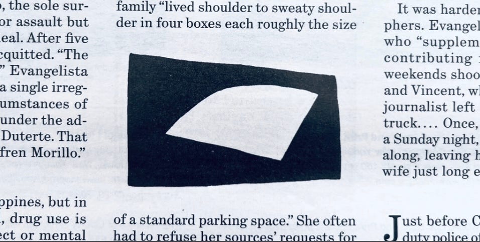 Still back in Yippee time! Love your simple floating shapes for the NYRB. Their positive and negative spaces seemed to be relatives of your friend's Missing photographs.