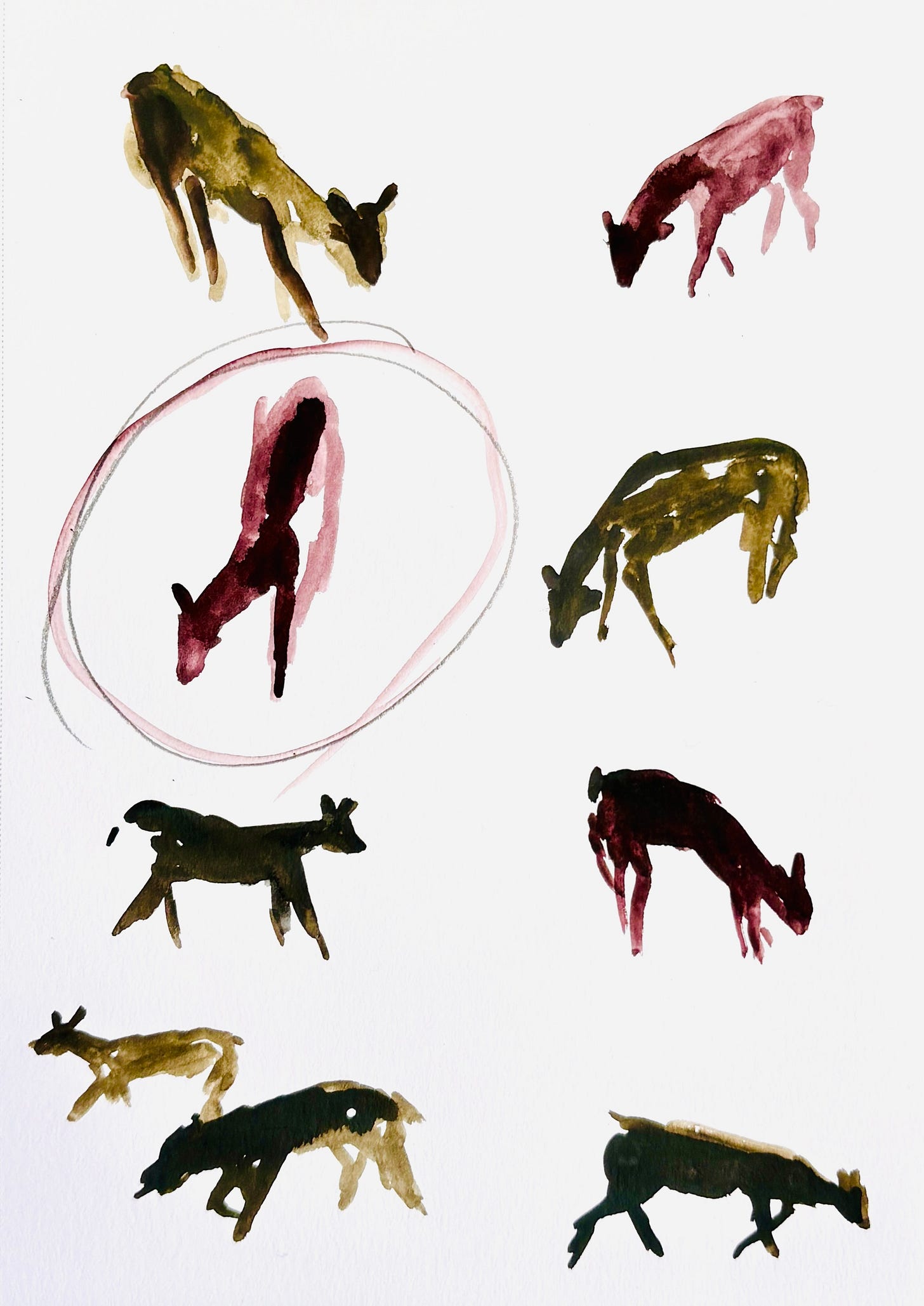 I was painting these deer this morning and thinking about Mikko. I asked him a few days ago if he had been writing about the wars. (He hasn’t responded yet. Mikko! What are you doing?) Many, many years ago, Mikko was a student in my class and also my research assistant. It gives me a jolt of pleasure whenever I see his poems or excerpts of his poem circulated on social media. Like this particular fragment: