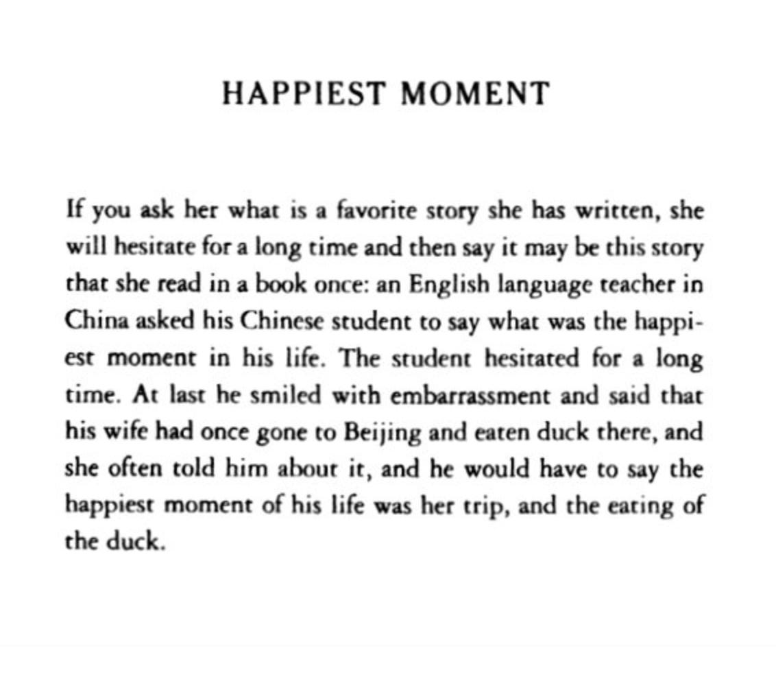 Here, as a token of my love for the students I met, is the story by Lydia Davis that I had mentioned above: